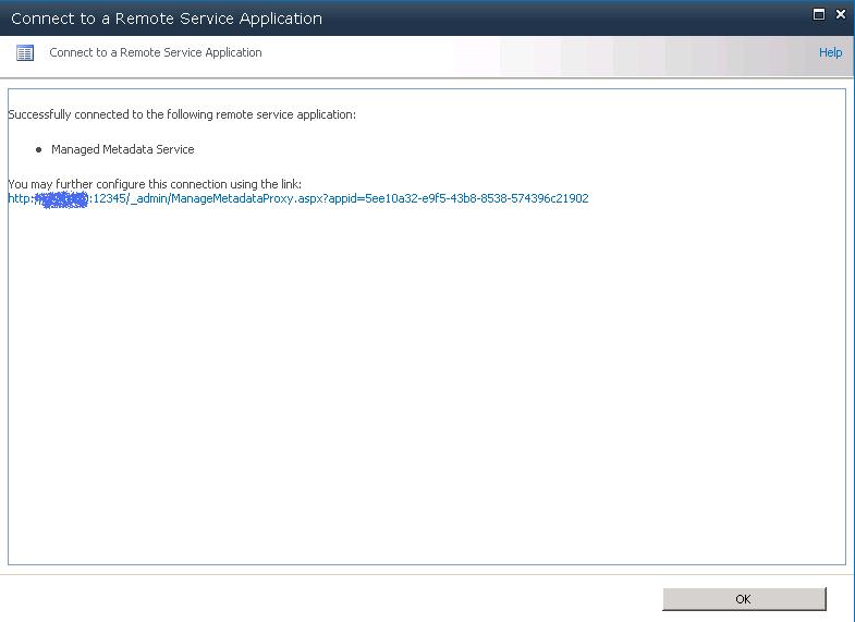 Congratulations, your service application is connected.  Click “OK”
